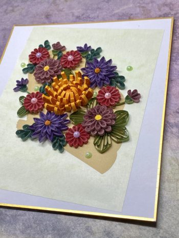 細い紙をくるくる丸めながらパーツを作り、そのパーツを組み合わせていろんな形(花・蝶・動物など)に仕上げていくペーパークラフトです。