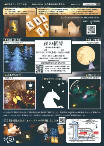 ◎紙漉きランプ作り体験のご予約は11月1日(土)より承ります。詳細はこちら