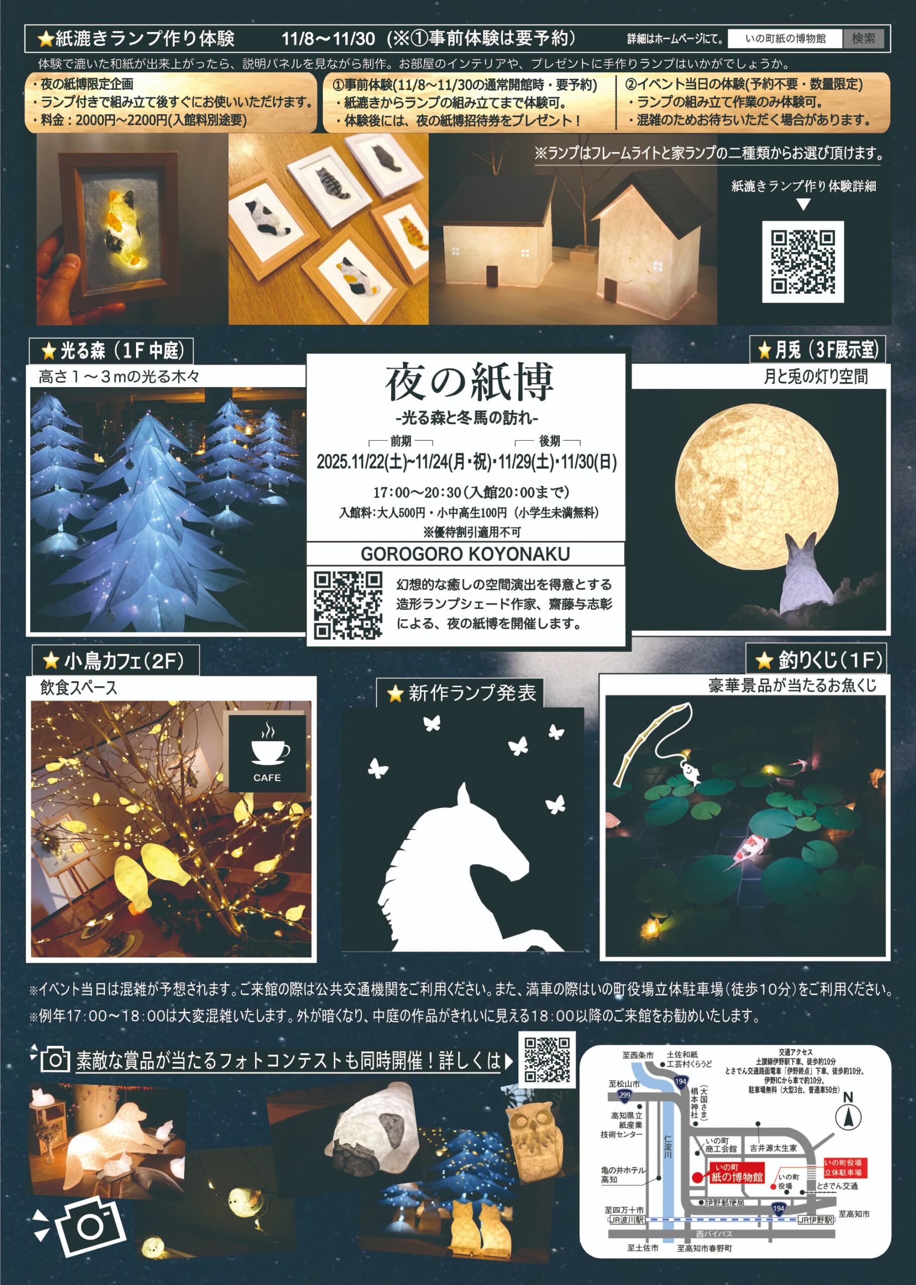 さらに、親子でいっしょに作れる「ランプ作りワークショップ」や、やさしい灯りに包まれて過ごせる「和紙灯りカフェ」もオープン。大人も子どもも楽しめる夜のイベントです。