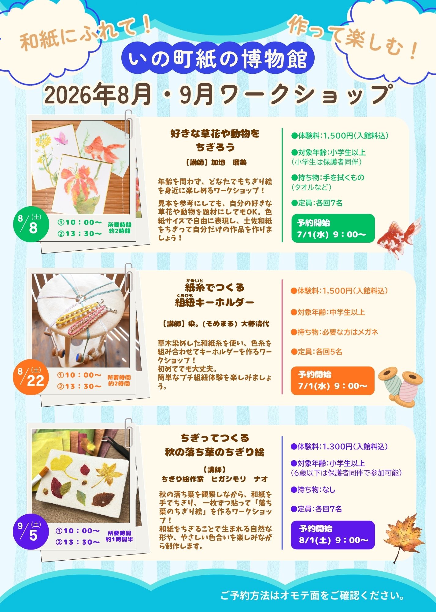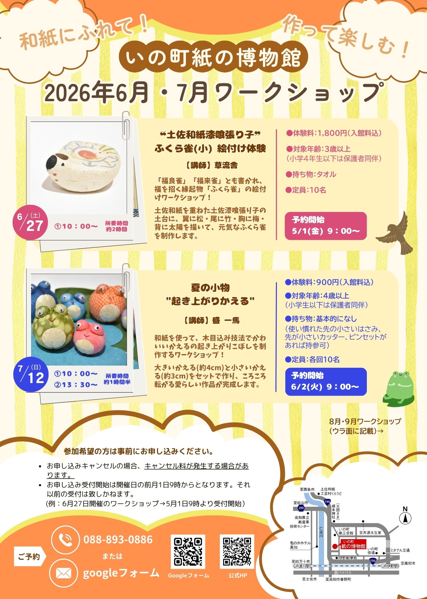 【2026年6月〜9月】いの町紙の博物館ワークショップ開催